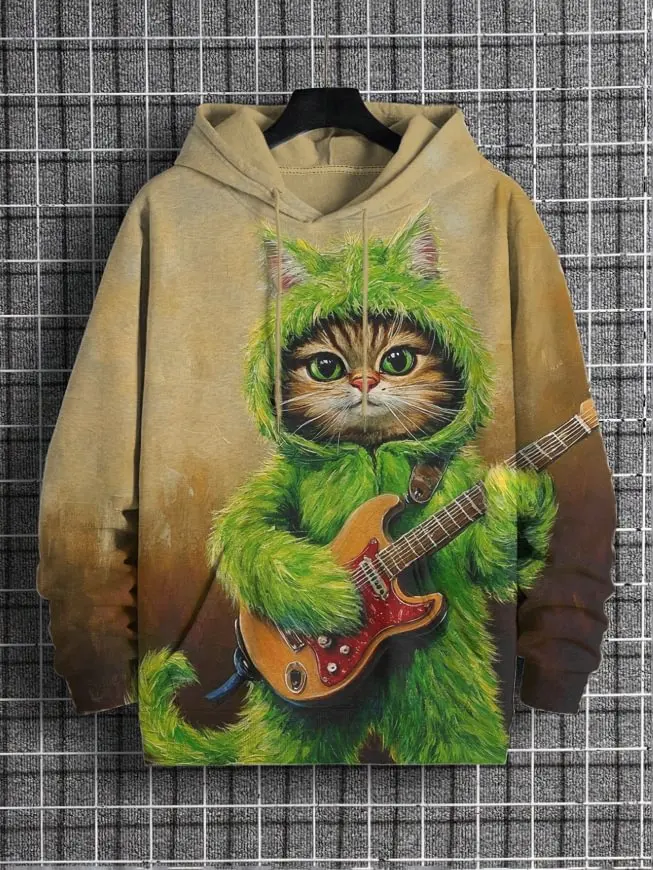 2026 Men's Hoodies Funny Cat Dinosaur UFO Art 3D Printed Cartoon Sweatshirt Men Women Tracksuit Oversized Casual Street Y2k Coat