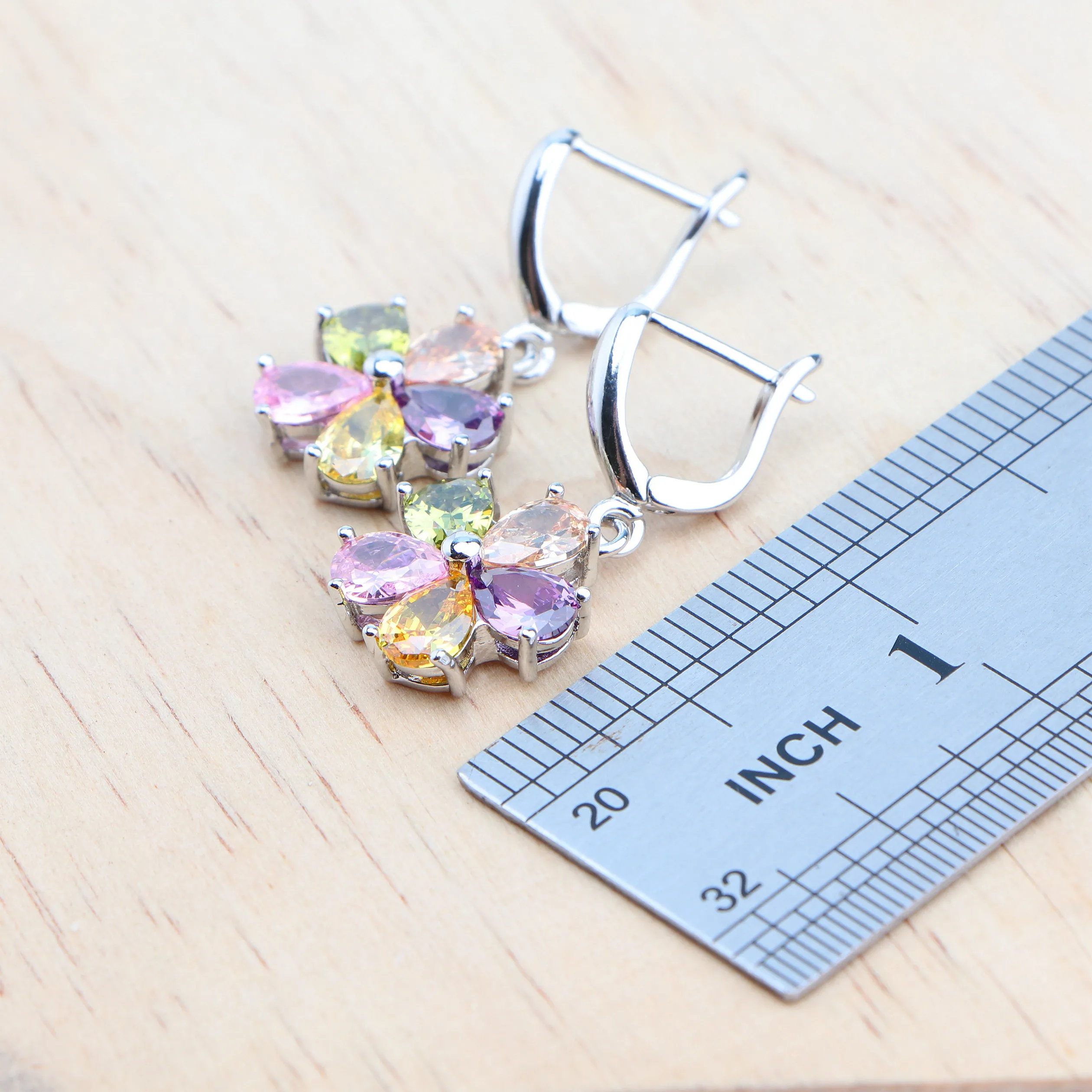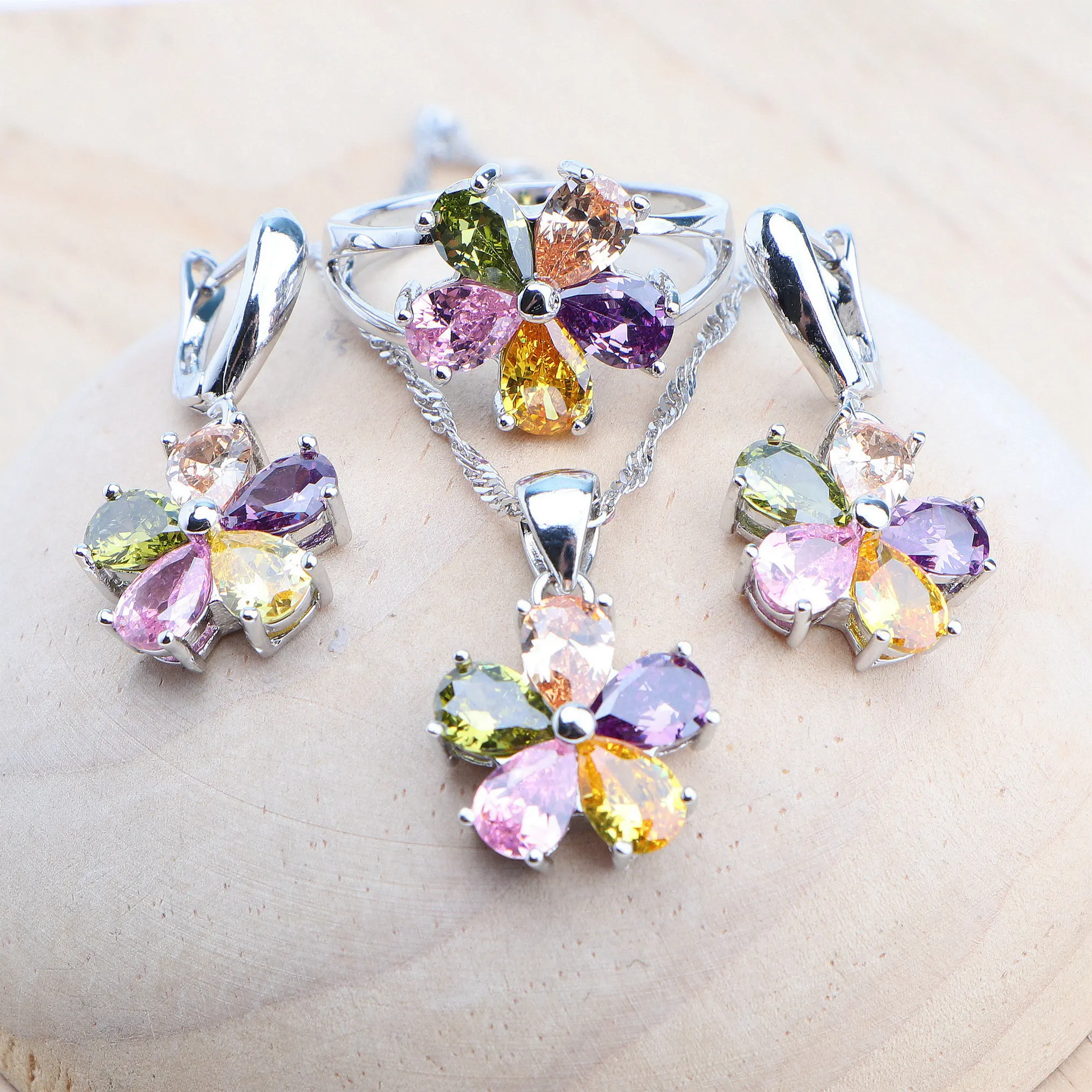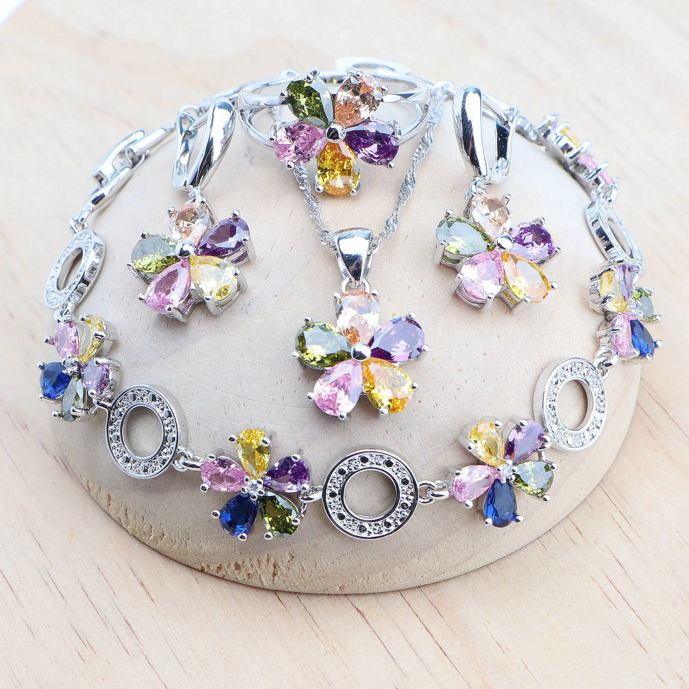 925 Silver Jewelry Sets Colorful Zironia Earrings Rings Pendant Necklace Stones Bridal Bracelets For Women Wedding Set Jewelry