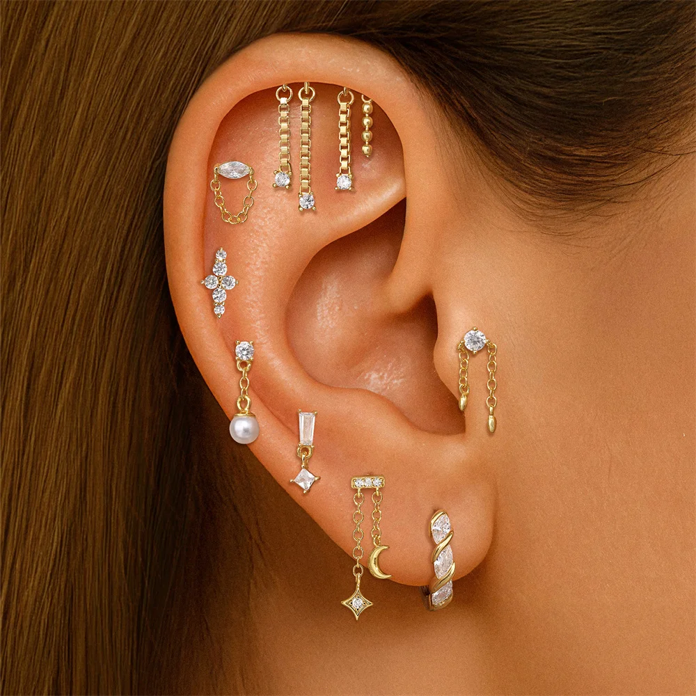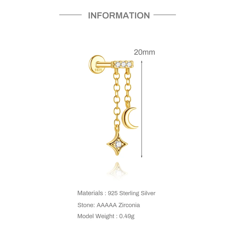 Aide 925 Sterling Silver Heart Flat Push-Back Zircon Pendiente Piercing Stud Earrings For Women K Gold Simple Elegant Jewelry