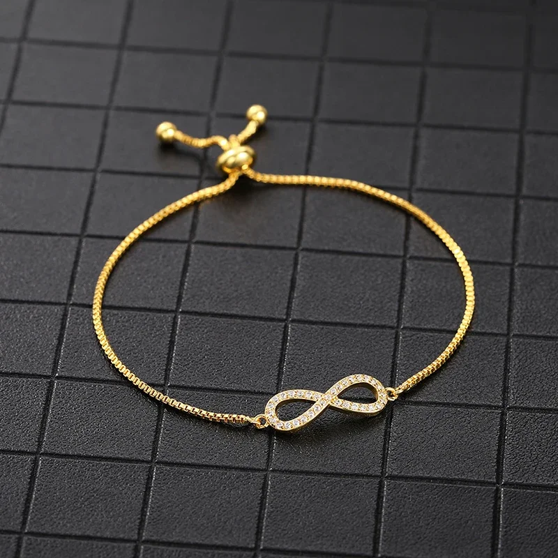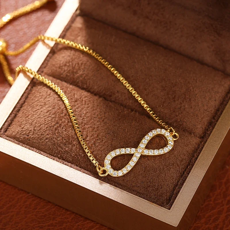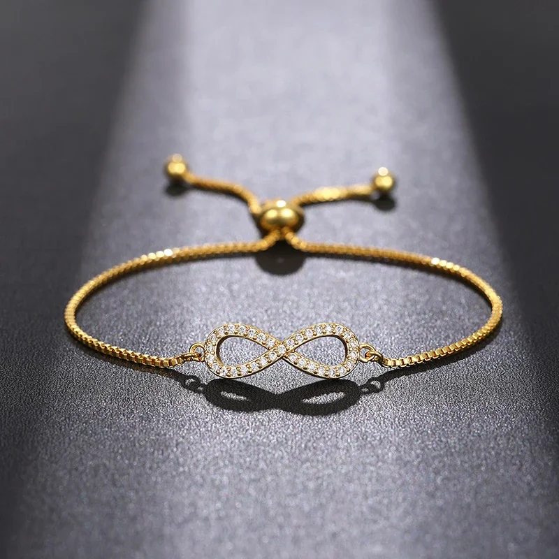 Huitan Elegant Infinity Shaped Bracelet for Women Gold Color Adjustable Box Chain Dazzling CZ Temperament Female Hand Jewelry