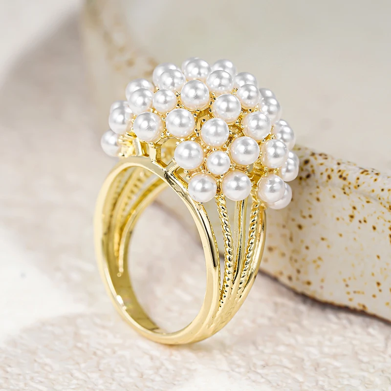 Huitan Luxuriant White/Purple Imitation Pearl Rings for Women Aesthetic Wedding Engagement Accessories Trendy Jewelry Drop Ship