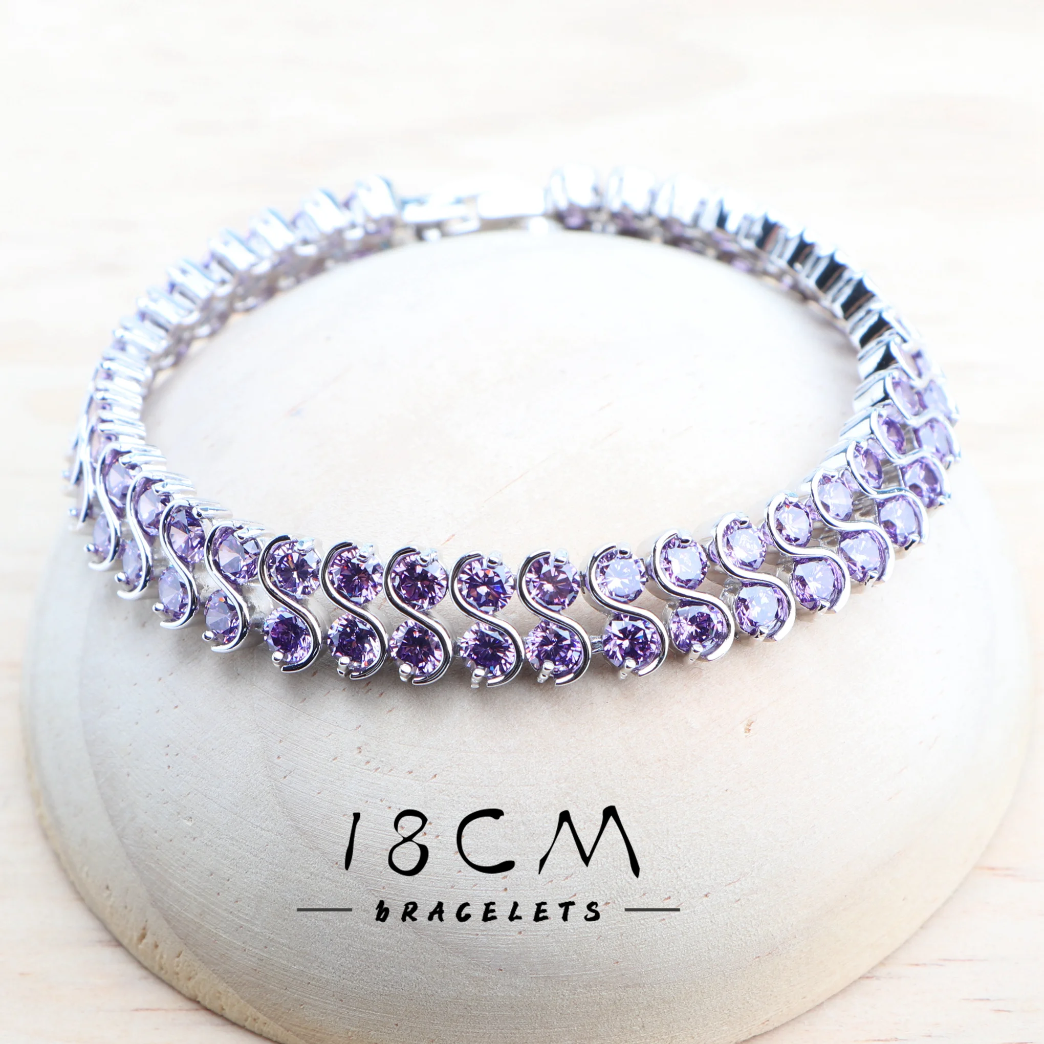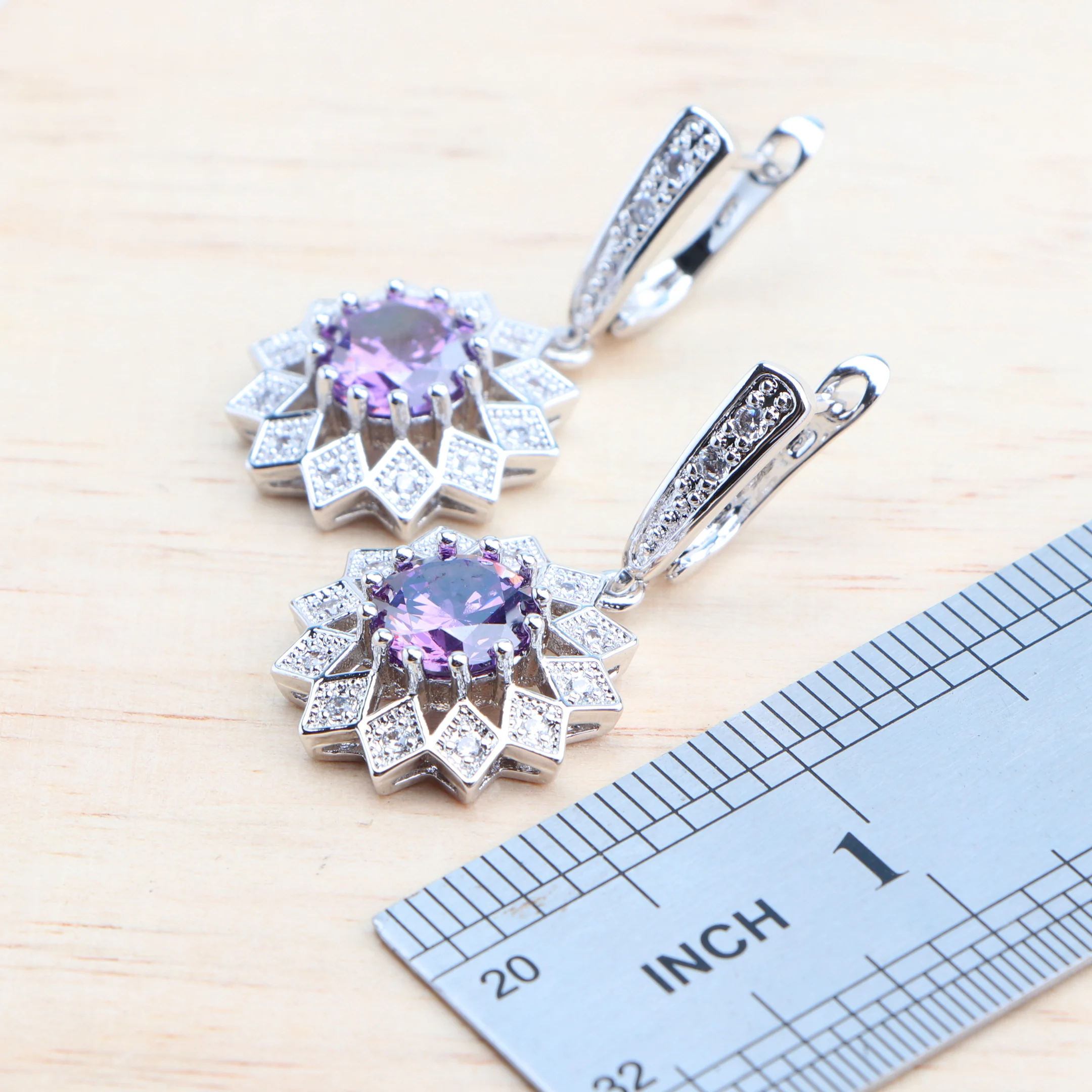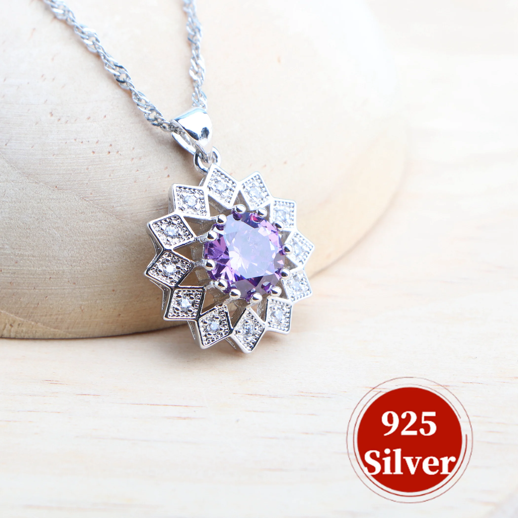 Wedding Silver 925 Jewelry Sets Bracelets Rings Earrings Pendant Purple Cubic Zirconia Necklace For Women Bridal Set Jewelry